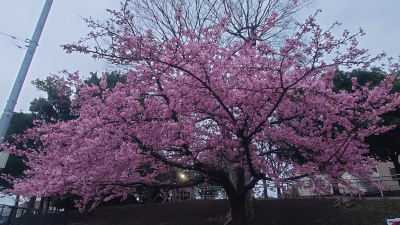 今朝のランニングで出会った、早咲きの桜。
