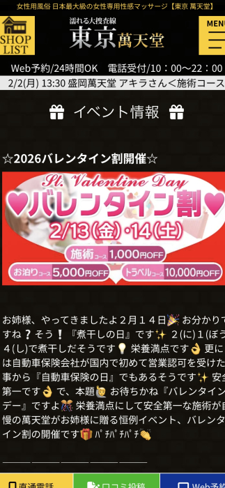 萬天堂ではバレンタインイベントも開催中です。