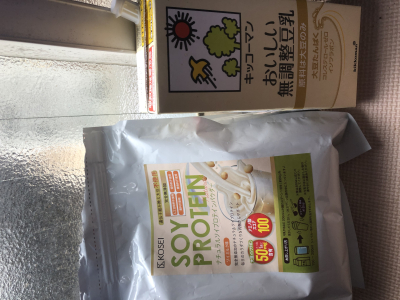 人工甘味料無添加のソイプロテインと無調整豆乳です。