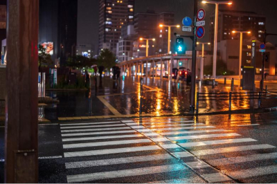 雨でぼやける硝子のネオン
