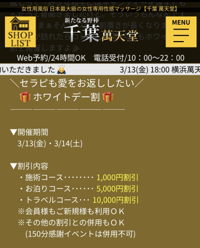 | 公式サイト | 千葉 萬天堂の公式サイト |