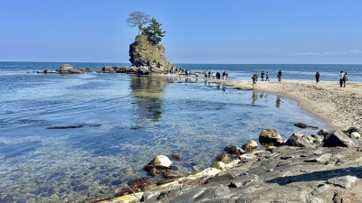 高岡市、雨晴海岸にて