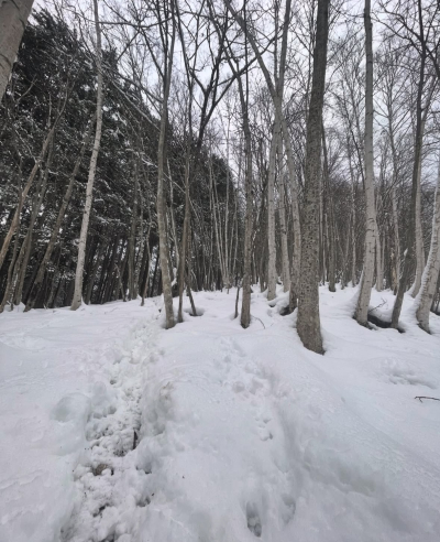 先輩と鹿の足跡を追って山奥まで、、、わ