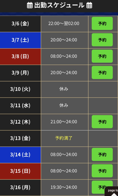 直近の出勤スケジュールです