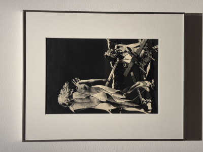 この作品はコラージュという技法で作られており、写真を貼って現実と非現実を表現する方法です。
