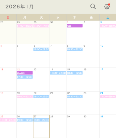 1月の出勤表を公開しました📅