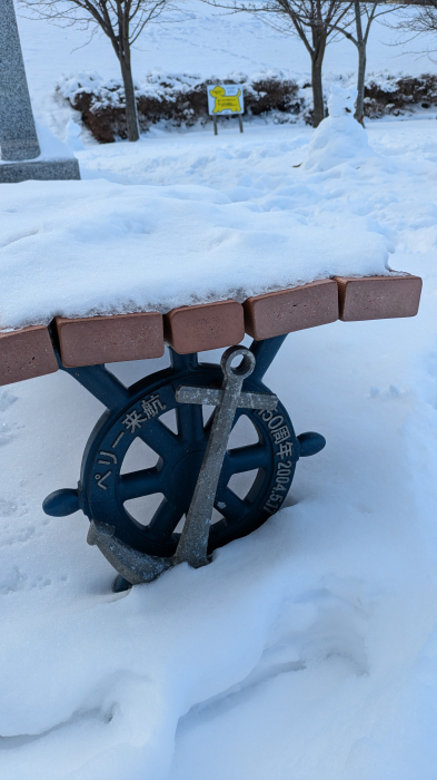 雪のなかウロウロしたなかで、ふらっと寄った公園のベンチの下部分がこのデザインになっていたんですよ。