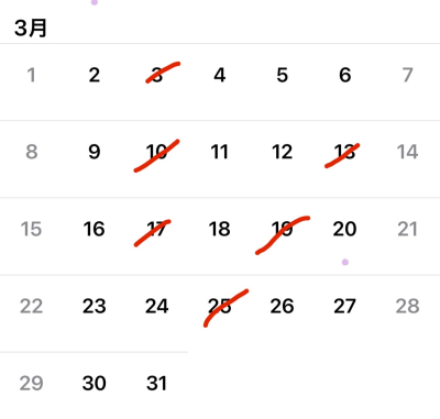 そしてもうすぐ3月が訪れますが、3月のご予約の受付を開始しております😊カレンダーに赤線の引いてある日はご予約満了となっておりました。